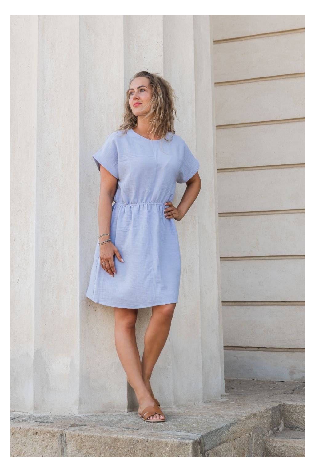 Šaty s kulatým výstřihem, které mají volnější pohodlný střih Vás nikdy neomrzí! Krátké rukávky, délka nad kolena. V pase je pružná guma, která podtrhne Váš pas a skvěle se přizpůsobí.
