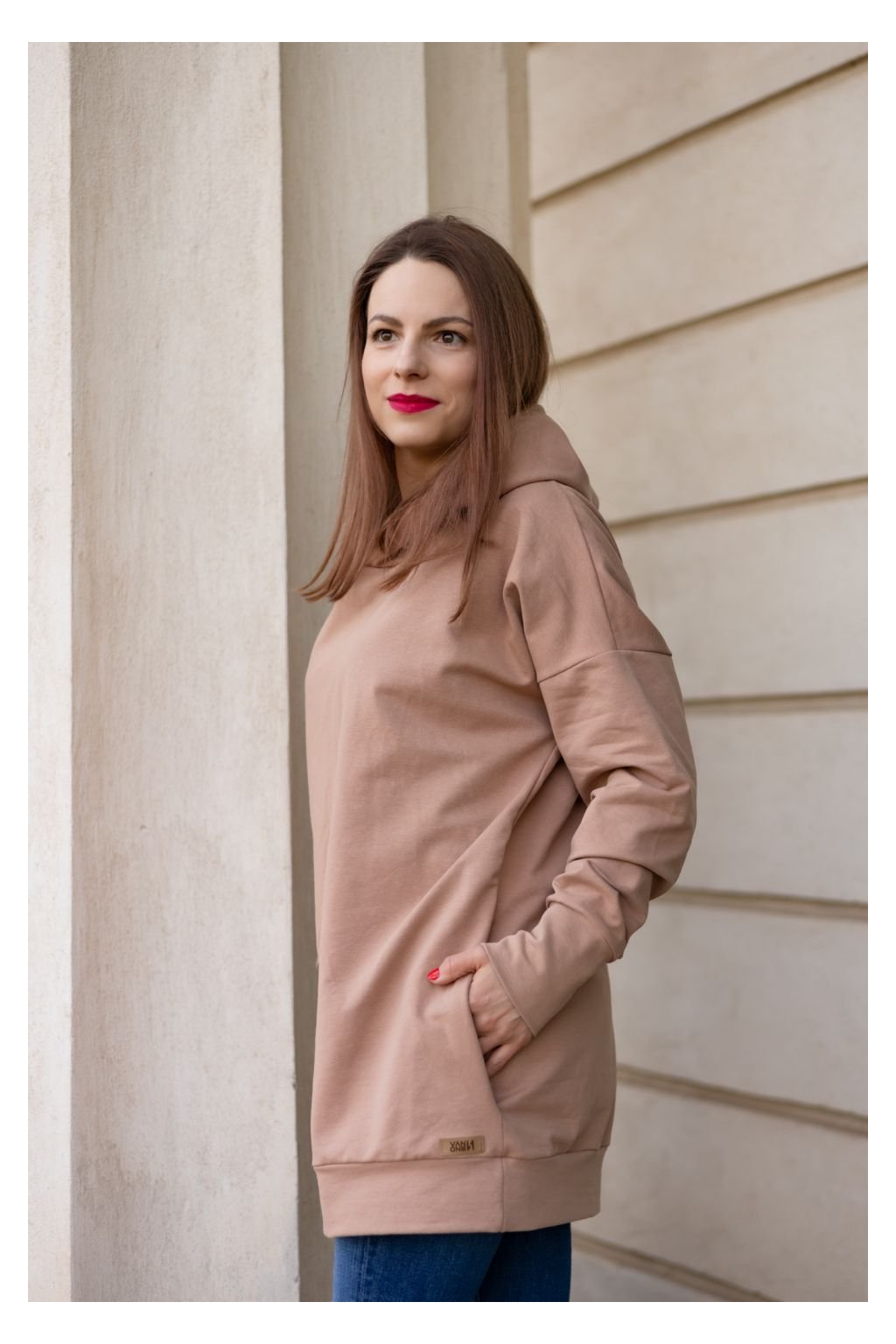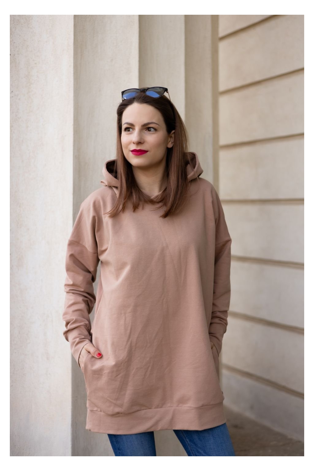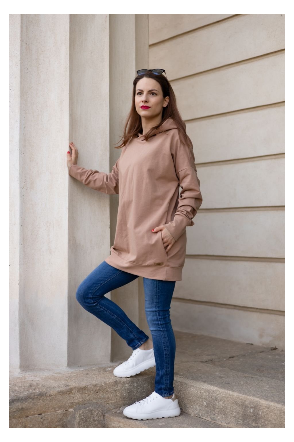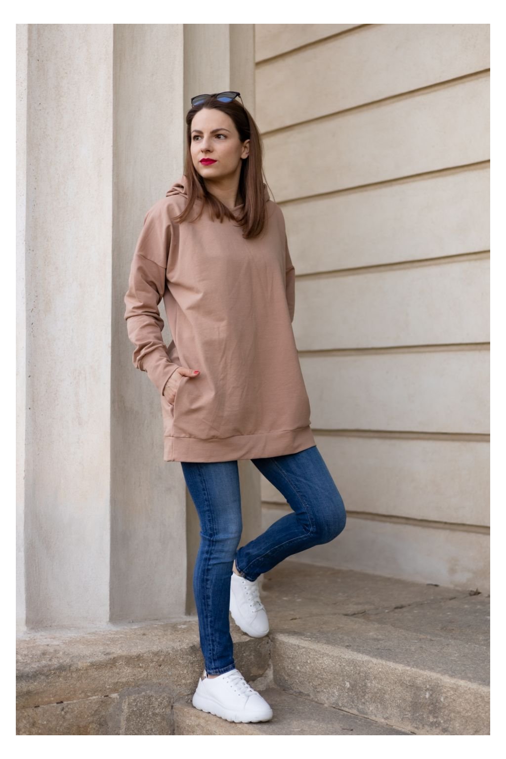 MODELKA má na sobě velikost S (měří 163cm) a barvu BÉŽOVOU